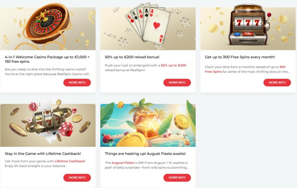Additionally, RealSpin offers a sports betting welcome bonus of 100% up to €200 for those interested in sports wagering, demonstrating their commitment to catering to all types of players.