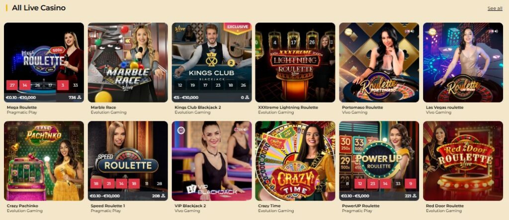 What sets WinMega apart is the inclusion of game show-style live games like Crazy Time, Monopoly Live, and Dream Catcher. These innovative titles combine elements of traditional casino games with entertaining game show formats, creating an engaging and social gaming experience.